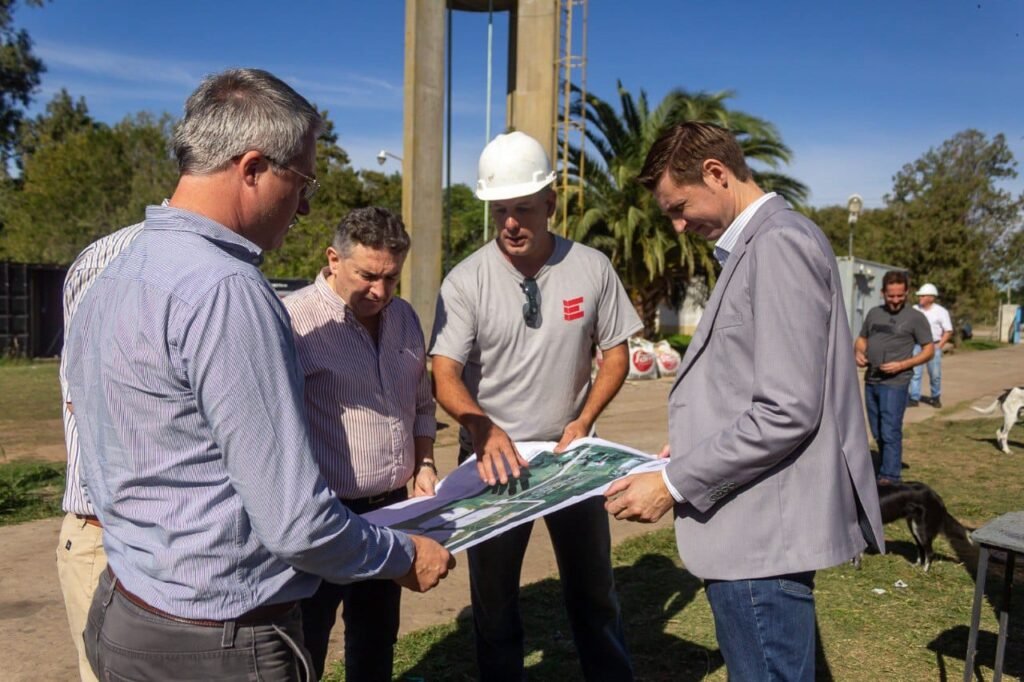 Como parte del exhaustivo circuito de obras relacionadas con el abastecimiento del agua en la ciudad cabecera del distrito, estuvieron en la Planta de Depuración de Líquidos Cloacales el Subsecretario de Recursos Hídricos de la Provincia Guillermo Jelinski, el Director Provincial de Agua y Cloacas Sergio Benet, el Jefe de Asesores de la Subsecretaría Javier Trezza y el Director de Saneamiento Rural Adrián Merlo, con el acompañamiento de nuestro Intendente Municipal.