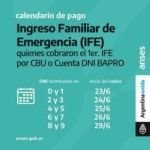 Mañana cobran el Ingreso Familiar de Emergencia (IFE) aquellas personas que eligieron la opción CBU en el primer cobro del beneficio y sus documentos terminen en 0 y 1. Para consultar la fecha de cobro, deberán ingresar en www.anses.gob.ar, sección Ingreso Familiar de Emergencia. … [Leer más...] acerca de CALENDARIO DE PAGO DEL INGRESO FAMILIAR DE EMERGENCIA
