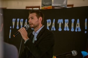 Acto por el 25 de Mayo en el salón de la Escuela N° 2 de Juan B. Alberdi.(Prensa Municipal) Estuvieron presentes numerosos funcionarios municipales, autoridades