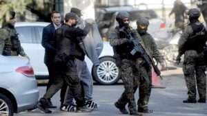 Cristina Fernández junto a su custodia. (Agencia Télam) A pocos días de que intentaran asesinarla frente a su departamento, en el barrio porteño de