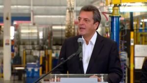 Sergio Massa en el anuncio de la suba de las asignaciones familiares, en Escobar. (Captura de video) El ministro de Economía, Sergio Massa, anunció