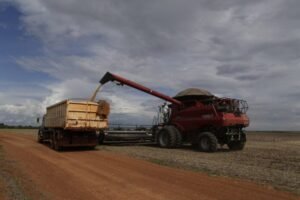 Una máquina agrícola deposita granos de soja en un camión. (Agencia Xinhua) Con el fin de engrosar las arcas del Banco Central (BCRA) y
