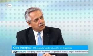 El presidente Alberto Fernández durante una entrevista para el canal alemán DW. El Presidente Alberto Fernández dio una entrevista al canal DW en Español,