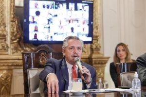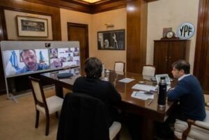 Kicilof, en un pasaje del diálogo con el intendente de Mar del Plata, Guillermo Montenegro. El gobernador Axel Kicillof les confirmó a los intendentes del