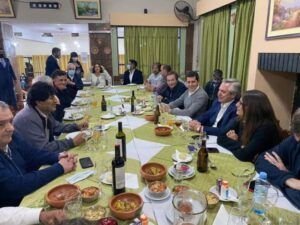 La foto de la cena polémica. Morales también estuvo. El presidente de la Nación, Alberto Fernández, deberá cumplir con el protocolo de aislamiento, al igual